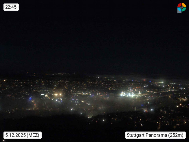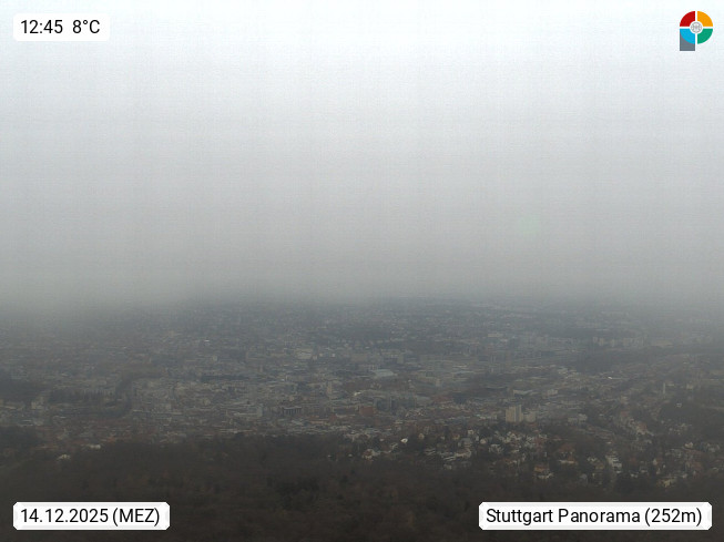 D 70597 Stuttgart 245m, Landeshauptstadt und größte Stadt von Baden Württemberg im sogenannten Stuttgarter Kessel südlich des Neckarbecken. Panoramablick vom Fernsehturm am Hohen Bopser 483m, Richtung Westen über die Stadt Stuttgart. Präsentiert von https://www.fernsehturm-stuttgart.de/.