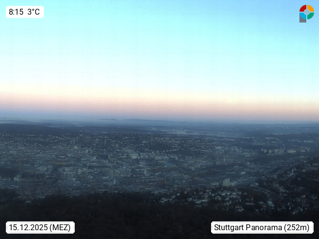 D 70597 Stuttgart 245m, Landeshauptstadt und größte Stadt von Baden Württemberg im sogenannten Stuttgarter Kessel südlich des Neckarbecken. Panoramablick vom Fernsehturm am Hohen Bopser 483m, Richtung Westen über die Stadt Stuttgart. Präsentiert von https://www.fernsehturm-stuttgart.de/.