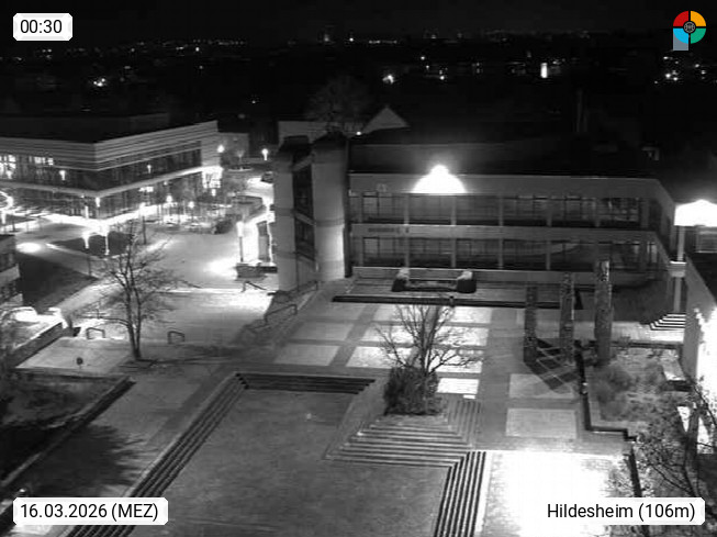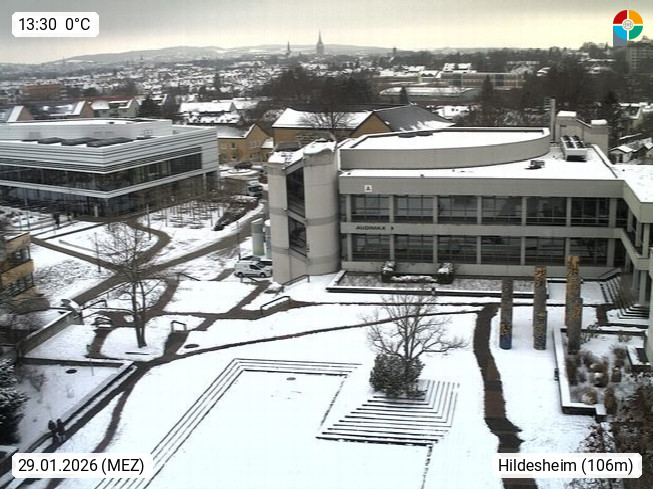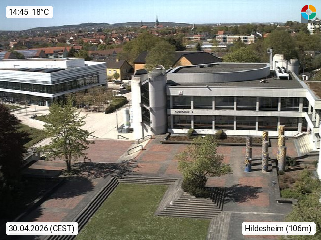 D 31141 Hildesheim 93m am rechten Ufer der Innerste, kreisfreie Stadt im Süden des Landes Niedersachsen. Blick über den Innenhof der Universität Hildesheim und den Kirchtürmen der Stadt zur Marienburger Höhe. Präsentiert von https://www.uni-hildesheim.de/.