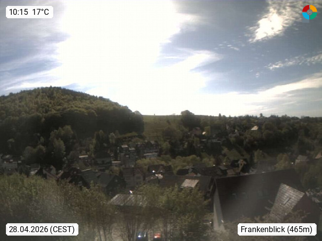 D 96528 Frankenblick - Rauenstein 395m, Gemeinde im Landkreis Sonneberg welche durch den Zusammenschluss der Gemeinde Effelder-Rauenstein und Mengersgereuth-Hämmern entstanden ist. Blick von der Triniushütte Richtung Süden über den Ort Rauenstein. Präsentiert von https://www.frankenblick.eu.
