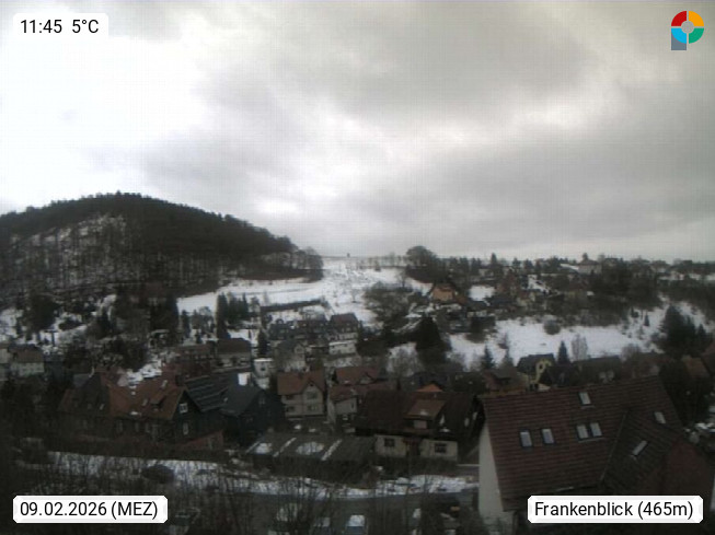 D 96528 Frankenblick - Rauenstein 395m, Gemeinde im Landkreis Sonneberg welche durch den Zusammenschluss der Gemeinde Effelder-Rauenstein und Mengersgereuth-Hämmern entstanden ist. Blick von der Triniushütte Richtung Süden über den Ort Rauenstein. Präsentiert von https://www.frankenblick.eu.
