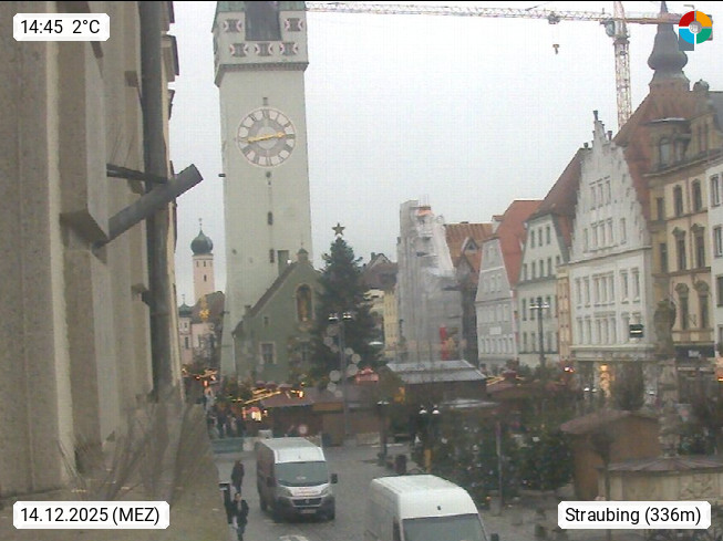 D 94315 Straubing im Gäuboden an der Donau 331m, kreisfreie Stadt und Verwaltungssitz der Planungsregion Donau Wald. Blick über den Ludwigsplatz zum Stadtturm von Straubing. Präsentiert von https://www.idowa.de/.