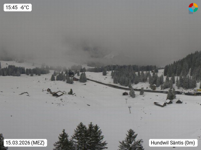 CH 9064 Hundwil 795m, Gemeinde im Hinterland des Kantons Appenzell Ausserrhoden an der Strasse zwischen Herisau und Appenzell. Panoramablick von der Aussichtsterrasse vom Säntis Gipfel 2.502m. Präsentiert von https://saentisbahn.ch/.