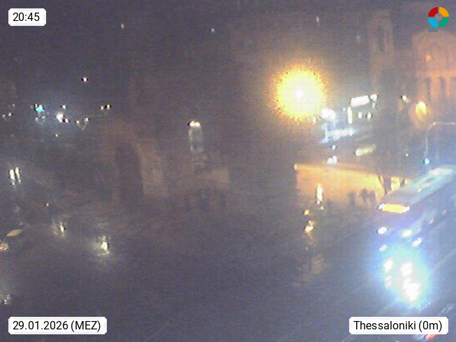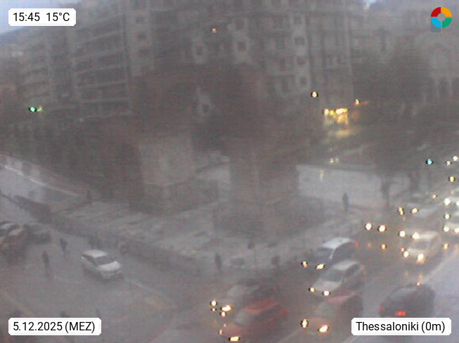GR 54642 Thessaloniki (Saloniki), zweitgrößte Stadt Griechenlands und Hauptstadt der Verwaltungsregion Zentralmakedonien an den Ausläufern des 1.200 m hohen Chortiatis Gebirges am Thermaischen Golf. Blick zum Triumphbogen des Galerius im Stadtzentrum. PROMOTED BY http://www.panocams.gr. Präsentiert von https://www.iama.gr/.