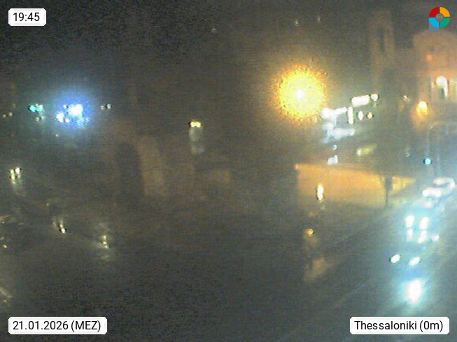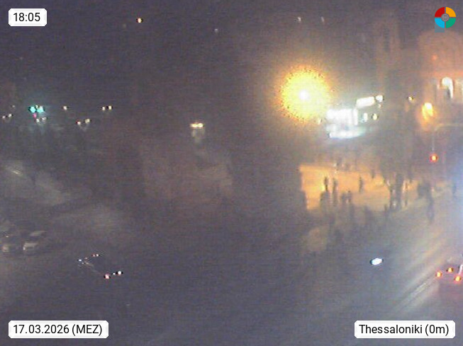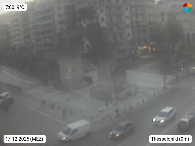GR 54642 Thessaloniki (Saloniki), zweitgrößte Stadt Griechenlands und Hauptstadt der Verwaltungsregion Zentralmakedonien an den Ausläufern des 1.200 m hohen Chortiatis Gebirges am Thermaischen Golf. Blick zum Triumphbogen des Galerius im Stadtzentrum. PROMOTED BY http://www.panocams.gr. Präsentiert von https://www.iama.gr/.