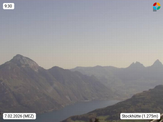 CH 6376 Emmenten, Blick von der Stockhütte 1.286m, Richtung Osten über den Vierwaldstättersee zu den Schweizer Alpen. Präsentiert von https://www.klewenalp.ch/de/.