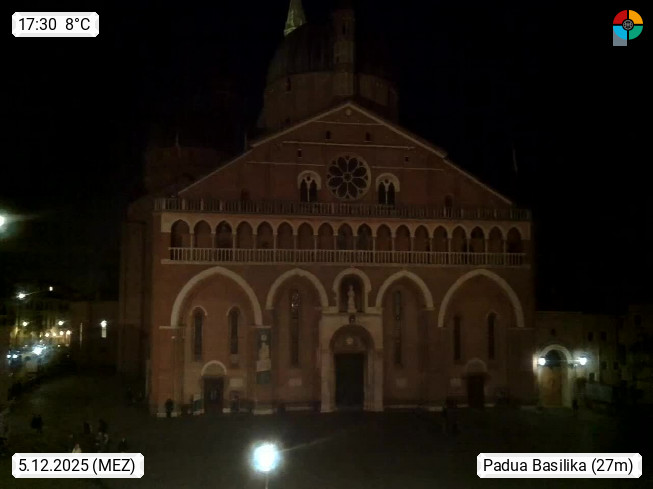 I 35100 Padua 12m, Hauptstadt der Provinz Padua (Padova) am Fluss Bacchiglione rund 30 km westlich von Venedig. Blick zur Basilika des Heiligen Antonius im Stadtzentrum, eines der berühmtesten und meistbesuchten Heiligtümer Italiens. Präsentiert von https://www.santantonio.info/.