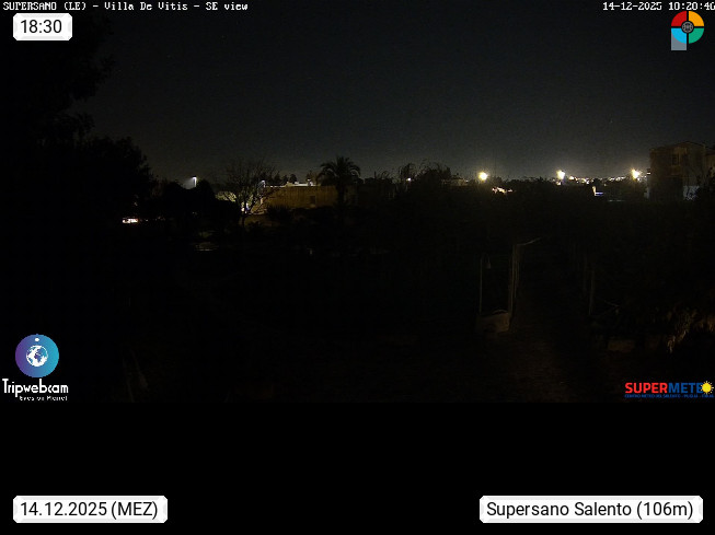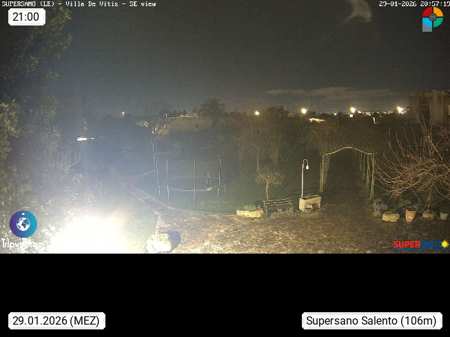 I 73040 Supersano 103m, in der Provinz Lecce auf der Halbinsel Salento, dem Stiefel Italiens. Blick Richtung NordWest zur Serra di S. Eleuterio. Präsentiert von https://www.supermeteo.com/.