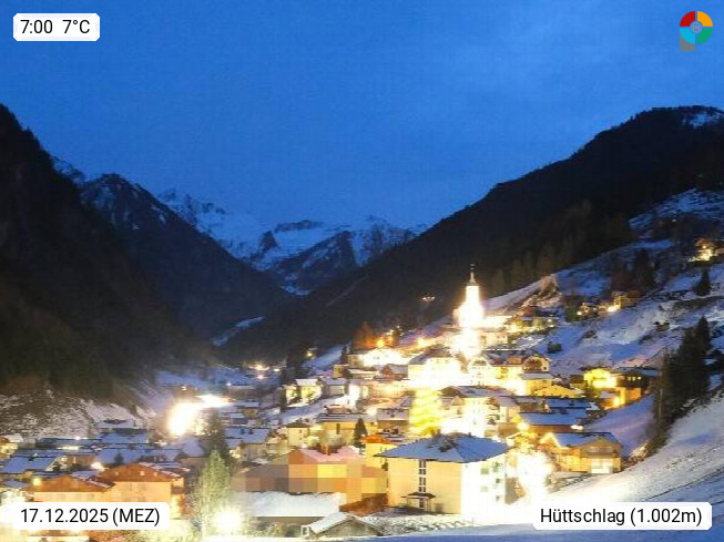 A 5612 Hüttschlag 1.030m liegt im südlichen Großarltal im Bezirk St. Johann im Pongau im Salzburger Land am Beginn des Nationalpark Hohe Tauern. Blick vom Landhotel Almrösl zur Pfarrkirche St. Josef in Hüttschlag Richtung Süden in das Tal der Almen. Im Hintergrund die Hohen Tauern mit Klingspitze 2.577m und Murtörl 2.260m an der Grenze zum Lungau. Präsentiert von https://www.almroesl.at/.