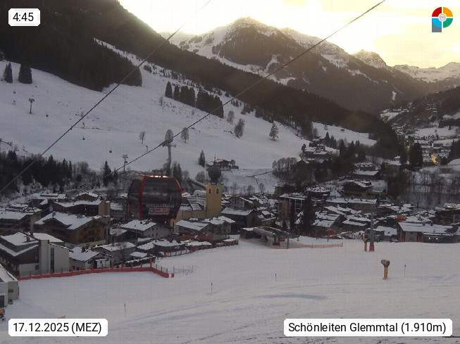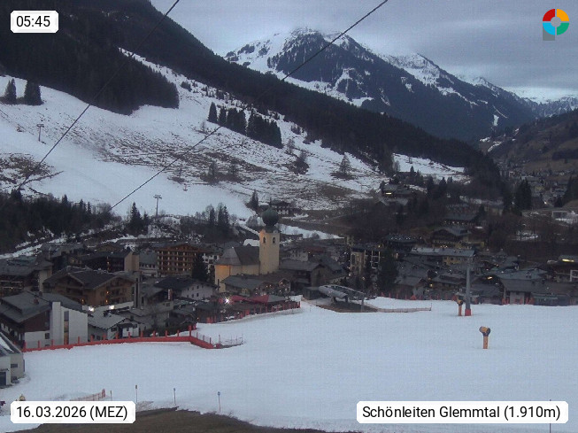 A 5753 Saalbach Hinterglemm 1.003m, Urlaubsort im Pinzgau in dem von Westen nach Osten verlaufenden Tal der Saalach und gehört zur Region der Kitzbüheler Alpen. im Bezirk Zell am See. Panoramablick über die Schönleiten am Asitz Kogel 1.910m im Skigebiet der Skischaukel Saalbach - Leogang, Richtung Westen in das Glemmtal. Präsentiert von https://www.saalbach.com/.