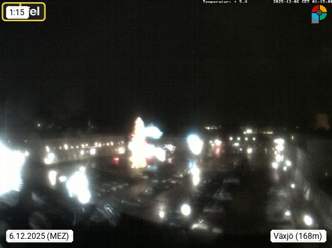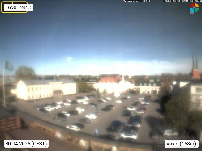 S 35231 Växjö, Universitätsstadt in Südschweden in der historischen Provinz Smaland und Hauptstadt der Provinz Kronobergs län. Blick Richtung Norden über den Marktplatz. PROMOTED BY http://www.panocams.se. Präsentiert von https://www.griffel.se.