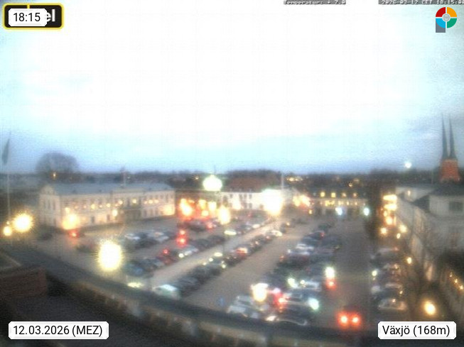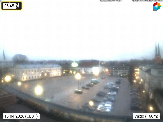 S 35231 Växjö, Universitätsstadt in Südschweden in der historischen Provinz Smaland und Hauptstadt der Provinz Kronobergs län. Blick Richtung Norden über den Marktplatz. PROMOTED BY http://www.panocams.se. Präsentiert von https://www.griffel.se.