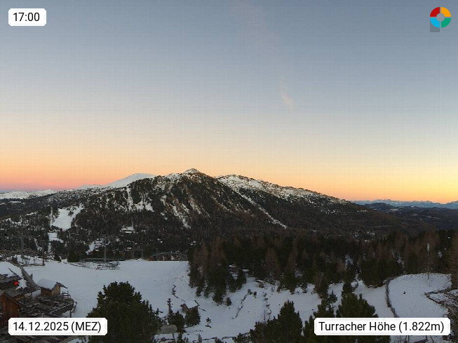A 9565 Reichenau, Ski- und Wandergebiet Turracher Höhe in den Gurktaler Alpen und Nockberge an der Grenze zur Steiermark. Panoramablick Richtung Südost über die Turracherhöhe. Präsentiert von https://www.turracherhoehe.at/de.