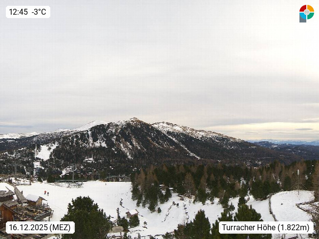 A 9565 Reichenau, Ski- und Wandergebiet Turracher Höhe in den Gurktaler Alpen und Nockberge an der Grenze zur Steiermark. Panoramablick Richtung Südost über die Turracherhöhe. Präsentiert von https://www.turracherhoehe.at/de.