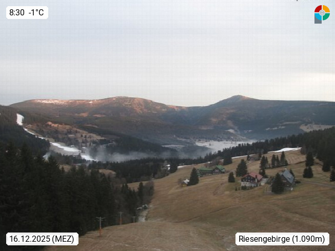 CZ 54221 Pec pod Snezkou (deut. Petzer) 769m, im tschechischen Teil des Riesengebirges (Krkonose) am Fuß der Schneekoppe (Snezka) 1.602m im Bezirk Okres Trutnov. Blick Richtung Norden zur Schneekoppe (Snezka) 1.602m dem höchsten Berg Tschechiens und des Riesengebirges (Krkonose). Präsentiert von https://www.hdinternet.cz/.