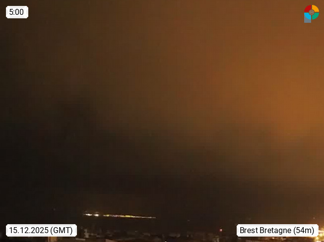 F 29200 Brest 34m, Hafenstadt in der Bretagne im Departement Finistere in Frankreich. Durch die tief in das Land ragenden Bucht des Atlantiks ist Brest seit Jahrhunderten ein bedeutender Marinehafen und noch heute Stützpunkt der französischen Atlantikflotte. Panoramablick in nordwestlicher Richtung über den Place de la liberte und der Stadt Brest hin zum Atlantik. Präsentiert von https://www.brest.fr/brestfr-accueil-1575.html.