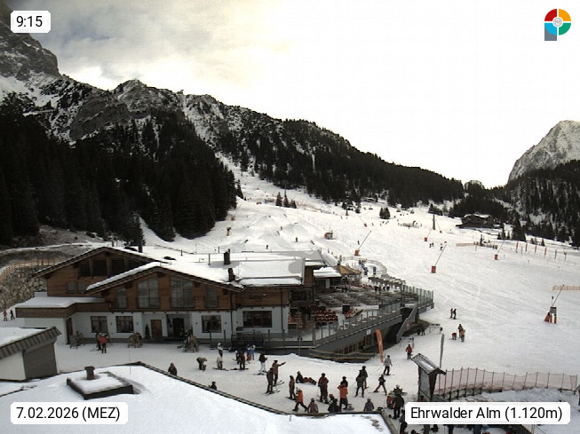 A 6632 Ehrwald mit Ehrwalder Alm, am Fusse des Wettersteingebirges im Bezirk Reutte. Blick Richtung Norden über die Ehrwalder Alm 1.500m, zum Wettersteinmassiv, dessen höchster Gipfel die Zugsspitze mit 2.962m ist. Die Ehrwalder Alm ist im Winter ein Skigebiet mit 7 Anlagen und 26 km Pisten, im Sommer ein beliebtes Wander- und Mountainbike Paradies. Präsentiert von https://www.almbahn.at/.