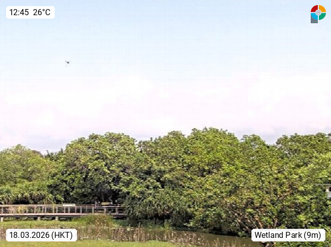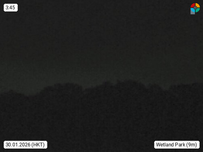 Hongkong 2.755 km², seit 1997 Hong Kong Special Administrative Region of the People Republic of China, eine Sonderverwaltungszone an der Südküste der Volksrepublik China. Hongkong liegt an der Mündung des Perlflusses in das südchinesische Meer und erstreckt sich über eine Halbinsel und rund 260 dazu gehörenden Inseln. Hongkong ist hinsichtlich der Bevölkerungszahl mit rund 7 Mio Einwohnern die drittgrößte Metropolregion der Volksrepublik China. Blick vom Wetland Park im nördlichen Stadteil von Hongkong nahe der ehemaligen Grenze zu China Richtung Nordosten zur Volksrepublik China. Präsentiert von https://www.hko.gov.hk/.