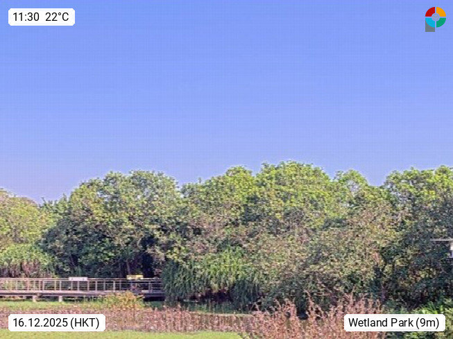Hongkong 2.755 km², seit 1997 Hong Kong Special Administrative Region of the People Republic of China, eine Sonderverwaltungszone an der Südküste der Volksrepublik China. Hongkong liegt an der Mündung des Perlflusses in das südchinesische Meer und erstreckt sich über eine Halbinsel und rund 260 dazu gehörenden Inseln. Hongkong ist hinsichtlich der Bevölkerungszahl mit rund 7 Mio Einwohnern die drittgrößte Metropolregion der Volksrepublik China. Blick vom Wetland Park im nördlichen Stadteil von Hongkong nahe der ehemaligen Grenze zu China Richtung Nordosten zur Volksrepublik China. Präsentiert von https://www.hko.gov.hk/.