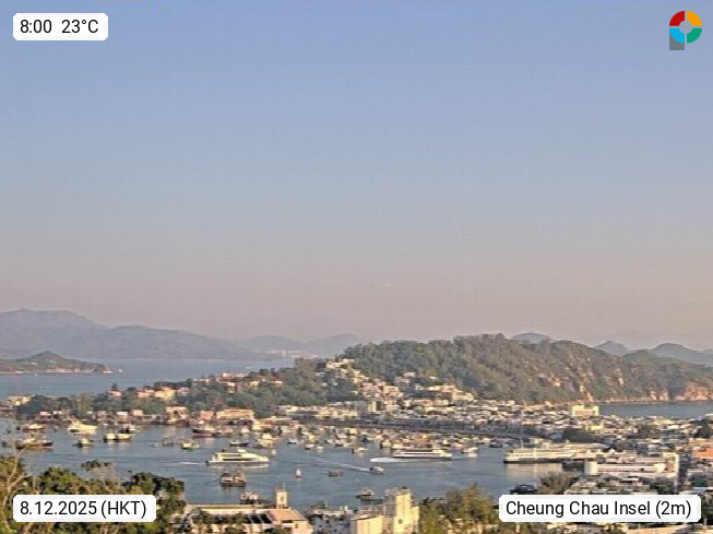 Hongkong 2.755 km² seit 1997 Hong Kong Special Administrative Region of the People Republic of China, eine Sonderverwaltungszone an der Südküste der Volksrepublik China. Hongkong liegt an der Mündung des Perlflusses in das südchinesische Meer und erstreckt sich über eine Halbinsel und rund 260 dazu gehörenden Inseln. Hongkong ist hinsichtlich der Bevölkerungszahl mit rund 7 Mio Einwohnern die drittgrößte Metropolregion der Volksrepublik China. Blick von der südlich gelegenen Insel Cheung Chau Richtung Norden zum Hongkong Festland. Präsentiert von https://www.hko.gov.hk/.