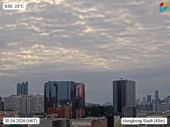 Hongkong 2.755 km² seit 1997 Hong Kong Special Administrative Region of the People Republic of China, eine Sonderverwaltungszone an der Südküste der Volksrepublik China. Hongkong liegt an der Mündung des Perlflusses in das südchinesische Meer und erstreckt sich über eine Halbinsel und rund 260 dazu gehörenden Inseln. Hongkong ist hinsichtlich der Bevölkerungszahl mit rund 7 Mio Einwohnern die drittgrößte Metropolregion der Volksrepublik China. Blick vom Bürogebäude des Wetterdienstes in Hongkong Tsim Sha Tsui, Richtung Osten, von links beginnend, Polytechnic University, Hong Kong Museum of History, im Hintergrund den Berg Tin Ha Shan und recht den Mount Paker. Präsentiert von https://www.hko.gov.hk/.