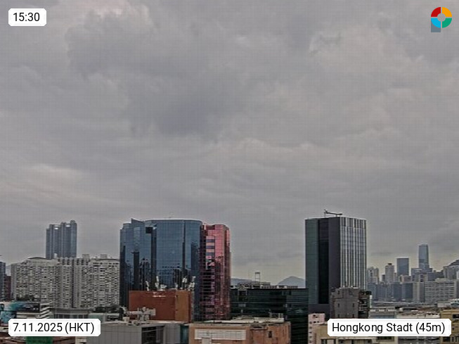 Hongkong 2.755 km² seit 1997 Hong Kong Special Administrative Region of the People Republic of China, eine Sonderverwaltungszone an der Südküste der Volksrepublik China. Hongkong liegt an der Mündung des Perlflusses in das südchinesische Meer und erstreckt sich über eine Halbinsel und rund 260 dazu gehörenden Inseln. Hongkong ist hinsichtlich der Bevölkerungszahl mit rund 7 Mio Einwohnern die drittgrößte Metropolregion der Volksrepublik China. Blick vom Bürogebäude des Wetterdienstes in Hongkong Tsim Sha Tsui, Richtung Osten, von links beginnend, Polytechnic University, Hong Kong Museum of History, im Hintergrund den Berg Tin Ha Shan und recht den Mount Paker. Präsentiert von https://www.hko.gov.hk/.