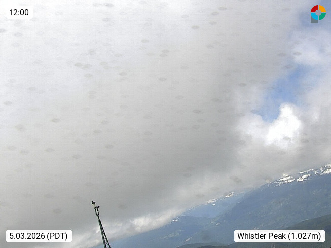 Whistler 680m Wintersportort in der Region Whistler Blackcomb etwa 110 km nordöstlich von Vancouver in British Columbia und größtes Skigebiet in Nordamerika. Blick vom Gipfel des Whistler Mountain 2.181m Richtung Norden. Whistler Blackcomb ist Austragungsort der Olympischen Winterspiele 2010 in Vancouver für die Ski Alpin, Bob und Rennrodel Wettbewerbe. Präsentiert von https://www.whistlerblackcomb.com/.