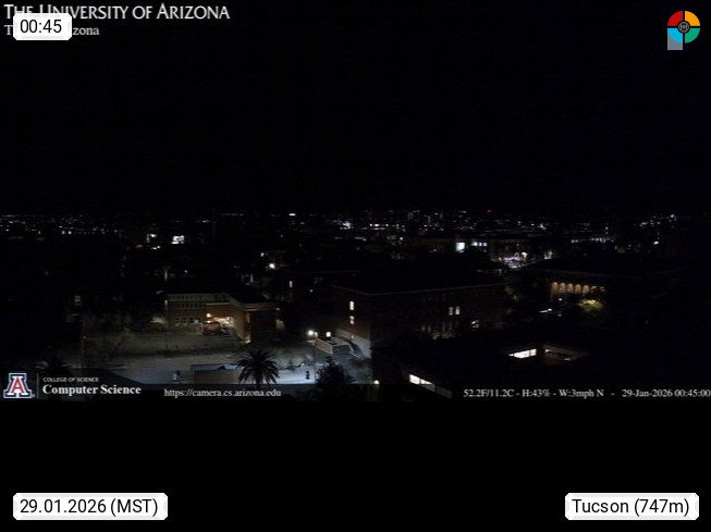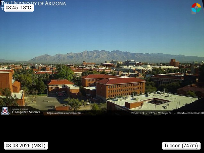 Tucson 728m, Stadt mit Verwaltungssitz im Pima County in Arizona und größte Stadt im südlichen Arizona. Blick von der Arizona University Richtung Norden über die Stadt zu den Santa Catalina Mountains. Präsentiert von https://www.cs.arizona.edu/.