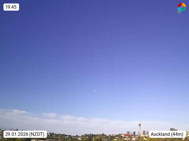 Auckland (Akarana) City of Sails, Hafenstadt auf der Nordinsel und ist die größte Stadt des Landes. Blick Richtung Nordosten zum Stadtzentrum mit dem Sky Tower, welcher mit 328m das höchste Gebäude der Südhalbkugel ist. Präsentiert von http://www.greylynnweather.net.