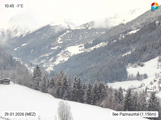 A 6553 See 1.100m an der Trisanna im Bezirk Landeck und erster Ort im Paznauntal. Blick Richtung Westen in das Paznauntal bis hin zur Silvretta. Präsentiert von http://www.silvrettacam.at.