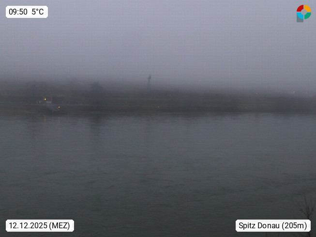A 3620 Spitz and der Donau 227m, Marktgemeinde am linken Donauufer in der Wachau im Bezirk Krems Land. Blick von Spitz stromabwärts Richtung Osten über die Fähranlegestelle zum Ort Arnsdorf am rechten Donauufer. Präsentiert von https://www.derbusch.at/.