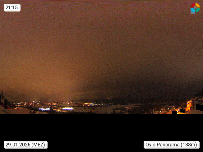 NO 0301 Oslo am Bonnefjord, Hauptstadt Norwegens und der Fylke Oslo wie auch der benachbarten Fylke Akershus. Panoramablick von 349m Richtung Südwesten über die Stadt Oslo. Präsentiert von http://voksenlia.net.