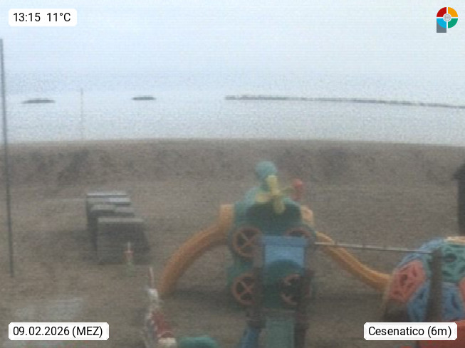 I 47042 Cesenatico 4m, an der Ostküste nördlich von Rimini in der Provinz Forli Cesena. Blick Richtung Osten über den Strand. Präsentiert von http://www.bagnomilano.com.