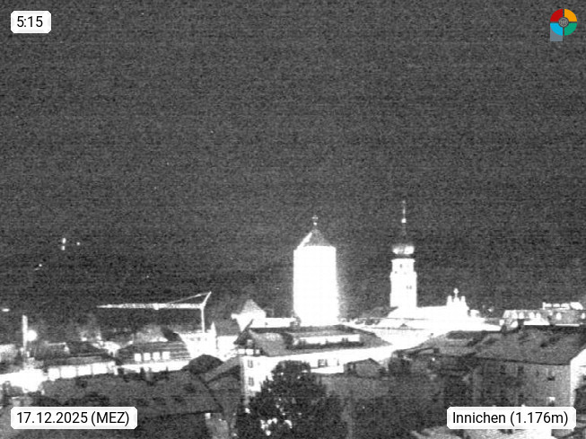 I 39038 Innichen (San Candido) 1.175m an der Drau im Pustertal an der Grenze zu Osttirol (Tirolo Orientale) in Österreich. Blick vom Sporhotel Tyrol im Ortszentrum, im Bild mit der romanischen Stiftskirche Richtung Osten, zum Helmplateu 2.050m am Helm (Monte Elmo) 2.434m. Präsentiert von https://www.sporthoteltyrol.it/de/4-sterne-superior-hotel-innichen.html.