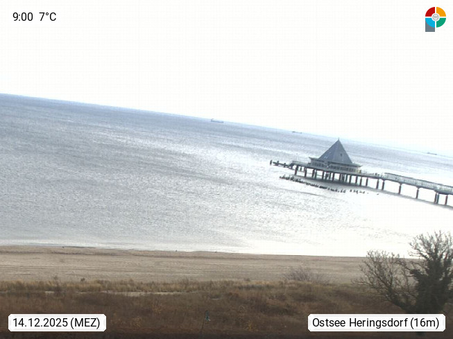 D 17424 Ostseebad Heringsdorf 7m, amtsfreie Gemeinde auf der Insel Usedom im Landkreis Ostvorpommern. Blick vom Strandhotel Richtung Osten über den Rosengarten zur Seebrücke in der pommerschen Bucht. Präsentiert von https://www.strandhotel-ostseeblick.de/.