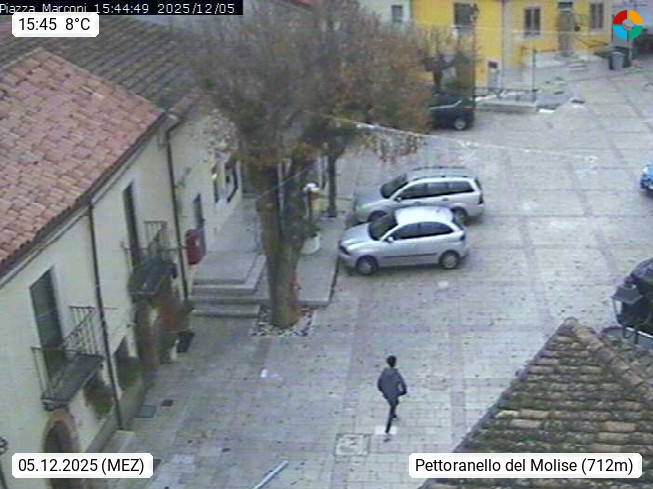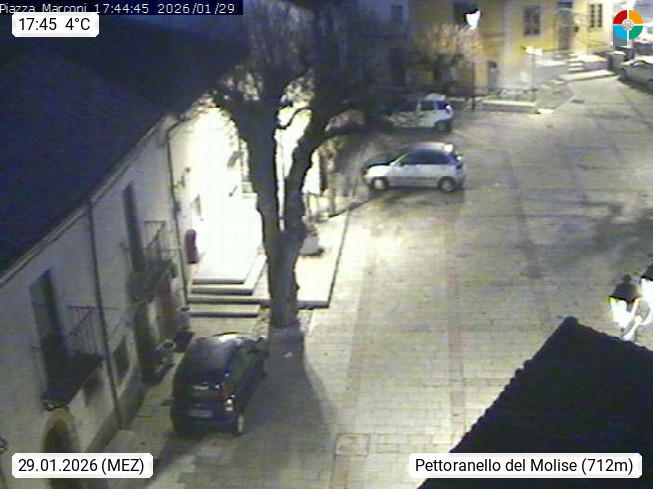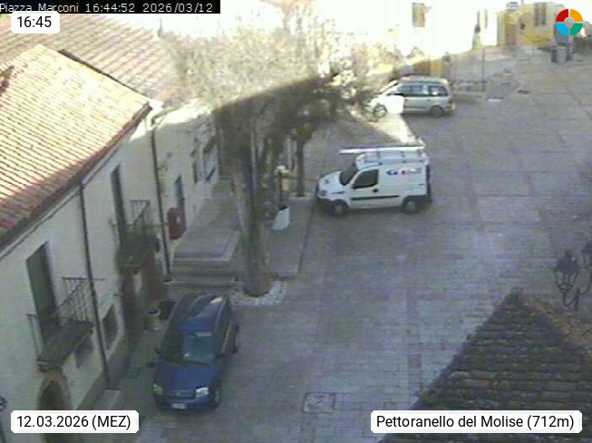I 86090 Pettoranello del Molise 737m, Gemeinde in der Provinz Isernia. Blick über die Piazza Marconi. Präsentiert von http://www.comune.pettoranellodelmolise.is.it.