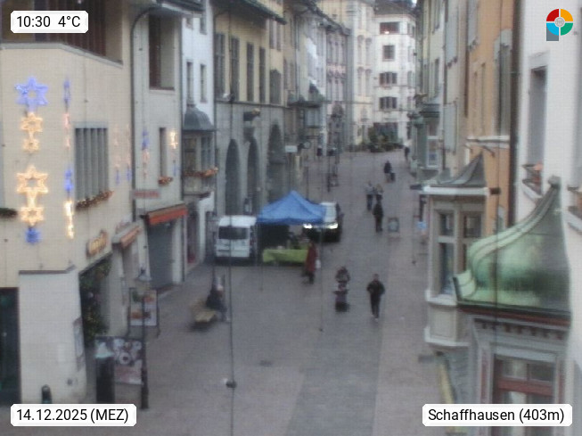 CH 8200 Schaffhausen (frz. Schaffhouse, ital. Sciaffusa) 403m, Hauptort des Kantons Schaffhausen an der Mündung der Durach in den Rhein. Blick zur Vordergasse in der Altstadt. Präsentiert von https://schaffhausen.ch/.
