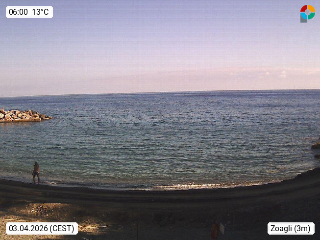 I 16030 Zoagli 13m, Küstenstadt am Golf von Tigullien an der Riviera di Levante in der Provinz von Genua. Blick von der Terasse vom Bagni Silvano Richtung SüdWest zum Ligurischen Meer. Präsentiert von https://www.bagnisilvano.it.
