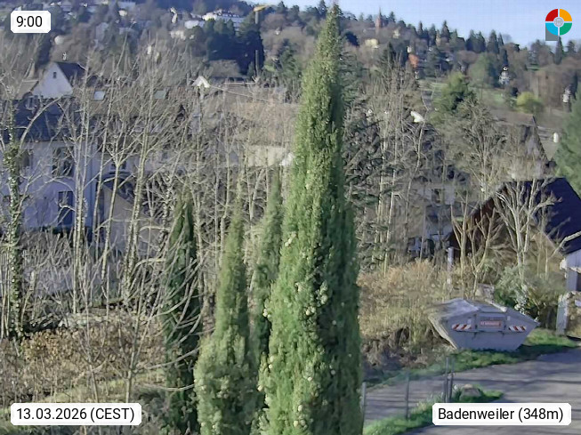D 79410 Badenweiler 350m, im Markgräflerland an den ersten Hügeln des Südschwarzwaldes rund 30 km südlich von Freiburg. Webcam im Kur & Feriencamping Badenweiler. Präsentiert von https://www.camping-badenweiler.de/.