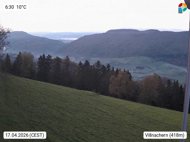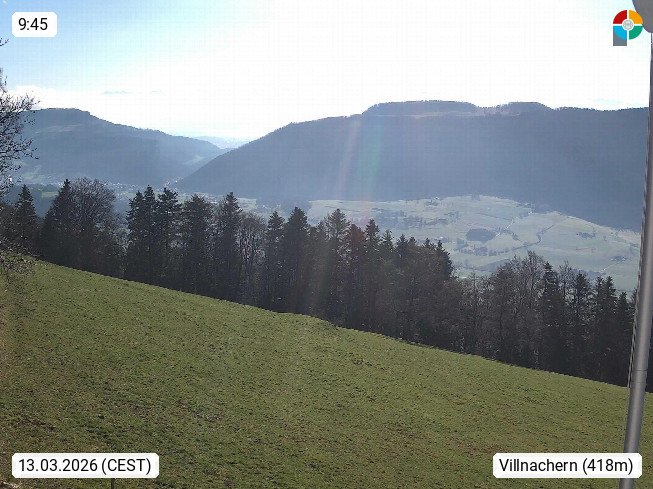 CH 5213 Villnachern 440m, Gemeinde im Bezirk Brugg in einer Mulde zwischen dem westlichen Ufer der Aare und dem Bözberg. Blick in südlicher Richtung über das Aaretal bis hin zur Alpenkette. Präsentiert von https://www.jemk.ch.