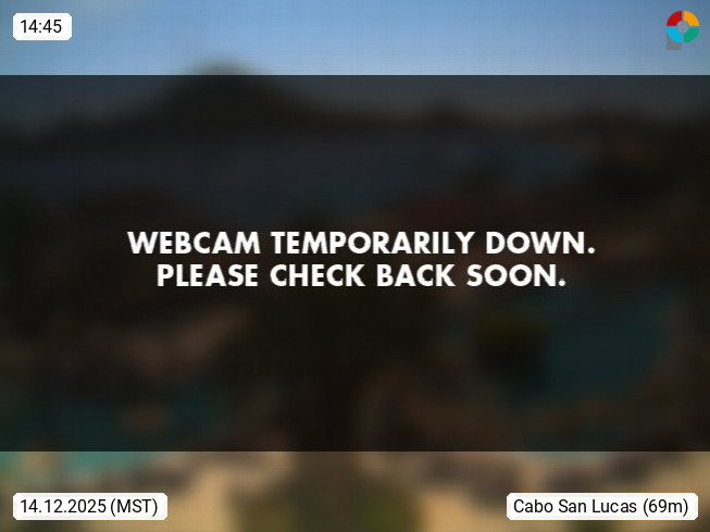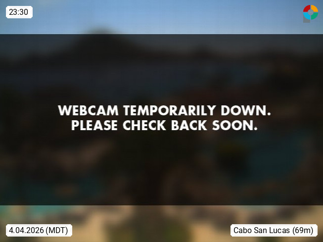 Cabo San Lucas, Ort an der äußersten Südspitze der zu Mexiko gehörenden Halbinsel Niederkalifornien in der Region Los Cabos im Bundesstaat Baja California Sur an der Pazifikküste. Panoramablick Richtung Süden über den Strand zum Wahrzeichen dem Felsen El Arco 62m. Präsentiert von https://www.cabovillas.com/.