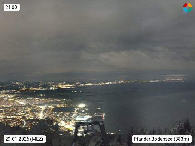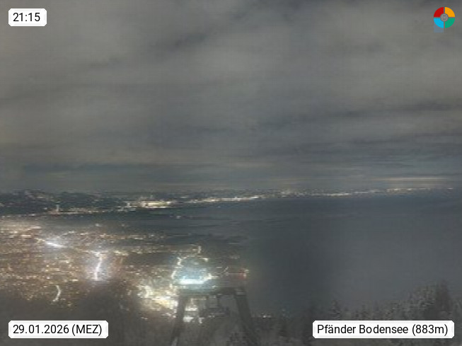 6900 Bregenz 427m, Landeshauptstadt von Vorarlberg und Bezirkshauptstadt des Bezirks Bregenz am Ostufer des Bodensees. Panoramablick vom Pfänder 1.064 m, dem Hausberg der Bregenzer Richtung Südwest über den Bodensee.