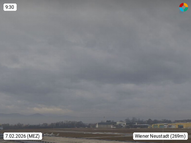 A 2700 Wiener Neustadt 273m, Statutarstadt und Verwaltungssitz des Bezirkes Wiener Neustadt Land im Steinfeld, dem südlichsten Teil des Wiener Beckens. Blick Richtung Westen über das Flugfeld. Präsentiert von https://loan-airport.at.
