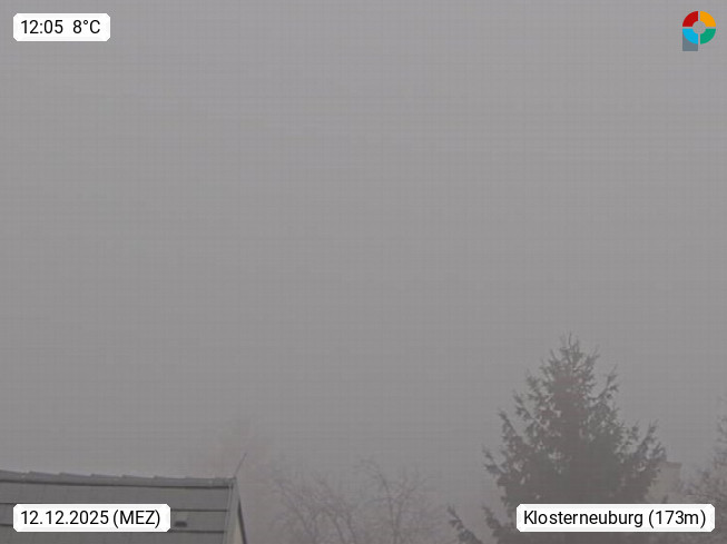 A 3400 Klosterneuburg 192 m an der Donau, bekannt durch das gleichnamige Stift Klosterneuburg.Blick von Klosterneuburg Richtung Osten zur Stadt Wien. Präsentiert von http://www.webcam-klosterneuburg.at.