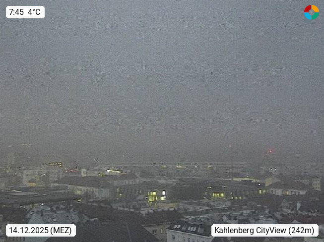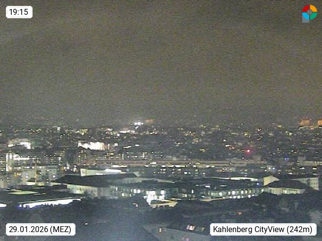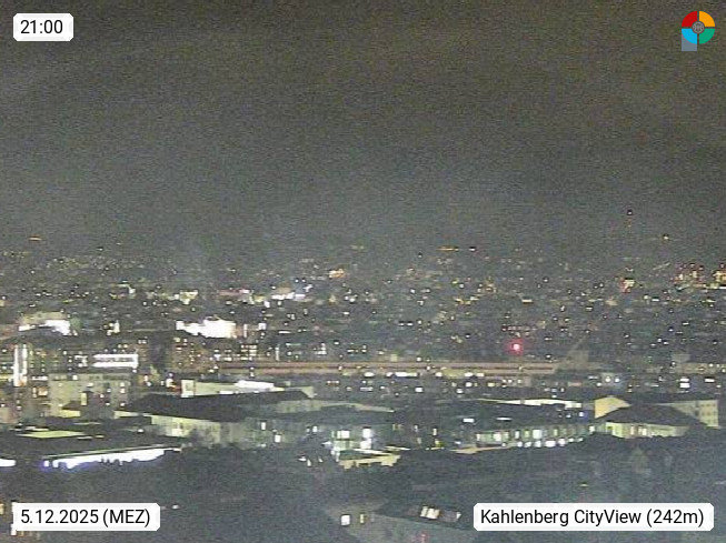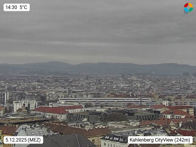 1100 Wien 192m, Bundeshauptstadt und zugleich eines der neun Bundesländer Österreichs im nordwestlichen Bereich des Wiener Beckens an der Donau. Blick vom Wasserturm auf der Kuppe des Wienerberges in Favoriten Richtung West über die Stadt entlang des Wiener Grürtels bis zum Kahlenberg 484m und Leopoldsberg 425m. Präsentiert von https://www.wien.gv.at/.