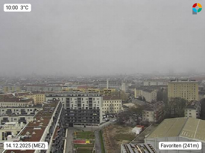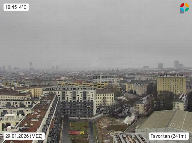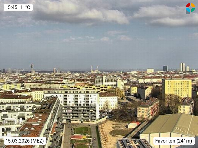 1100 Wien 241 m, Bundeshauptstadt und zugleich eines der neun Bundesländer Österreichs im nordwestlichen Bereich des Wiener Beckens an der Donau. Blick vom Wasserturm auf der Kuppe des Wienerberges Richtung Osten über Favoriten dem 10. Wiener Gemeindebezirk. Präsentiert von https://www.wien.gv.at/.