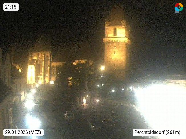 A 2380 Perchtoldsdorf 265m, Weinort im Bezirk Mödling an der südlichen Stadtgrenze von Wien am Wienerwald. Blick Richtung Norden über den Marktplatz im Zentrum. Präsentiert von https://www.perchtoldsdorf.at/.