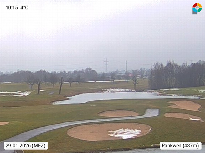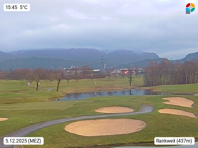 A 6830 Rankweil 460m, Marktgemeinde im Bezirk Feldkirch im oberen Rheintal in der Grenzregion zur Schweiz und Liechtenstein. Blick über das Gelände des Golfclubs Montfort. Präsentiert von https://www.golfclub-montfort.com/.