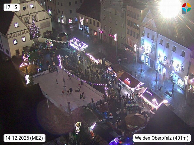 D 92637 Weiden in der Oberpfalz 396m, kreisfrei Stadt im Oberpfälzer Hügelland am vorderen Oberpfälzer Wald. Blick über den unteren Markt Richtung Westen. Präsentiert von https://www.weiden.de/webcams.