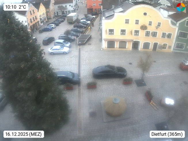 D 92345 Dietfurt an der Altmühl 365m, Stadt und Erholungsort im Naturpark Altmühltal. Blick über den Marktplatz Richtung Süden. Präsentiert von https://www.dietfurt.de/.